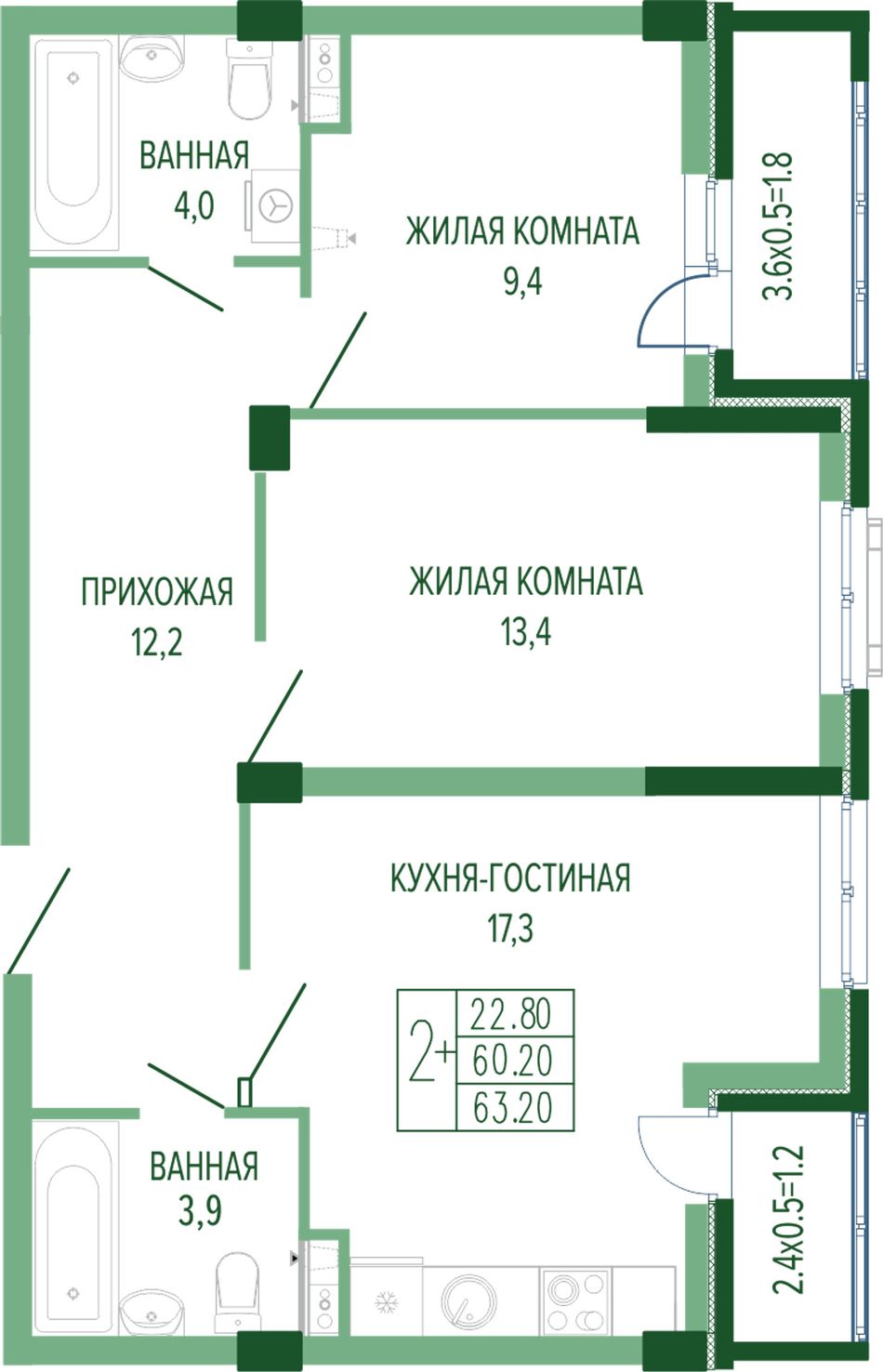 Жилая площадь22,8 м²