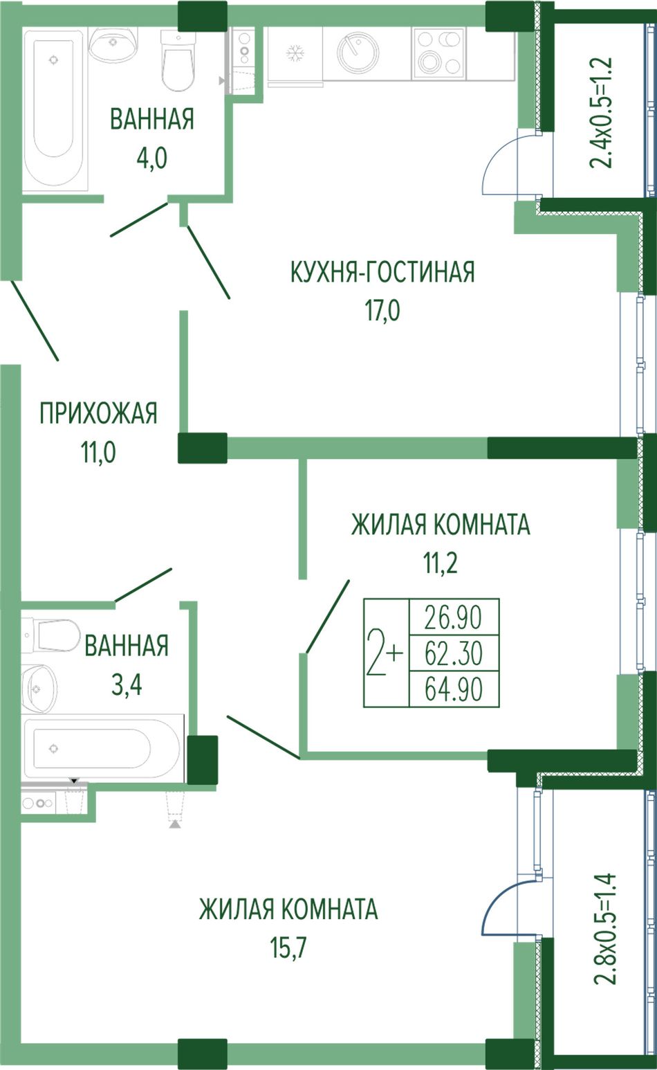 Жилая площадь26,9 м²