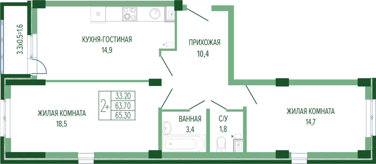 | 1-комн. | 38 - 63 м² | 9,1 - 16,1 млн ₽ |