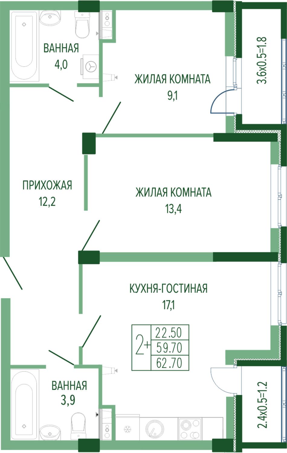 Жилая площадь22,5 м²