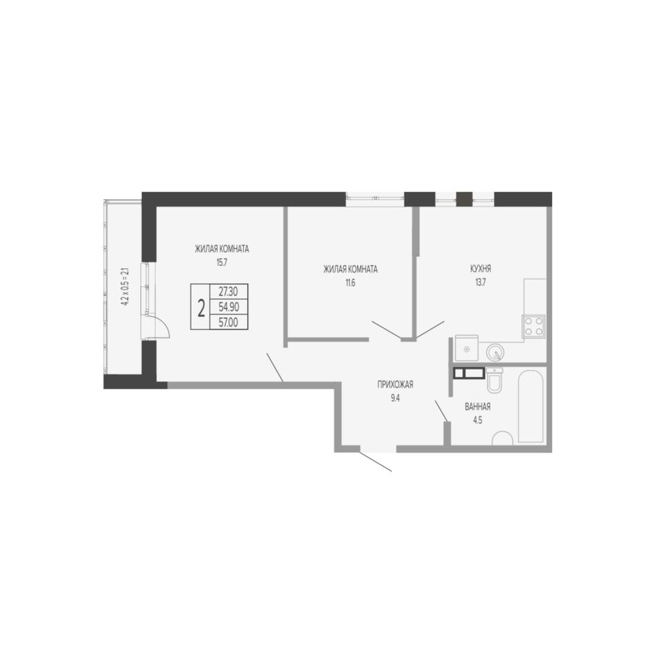 | 2-комн. | 57 - 77 м² | 11,9 - 23,5 млн ₽ |