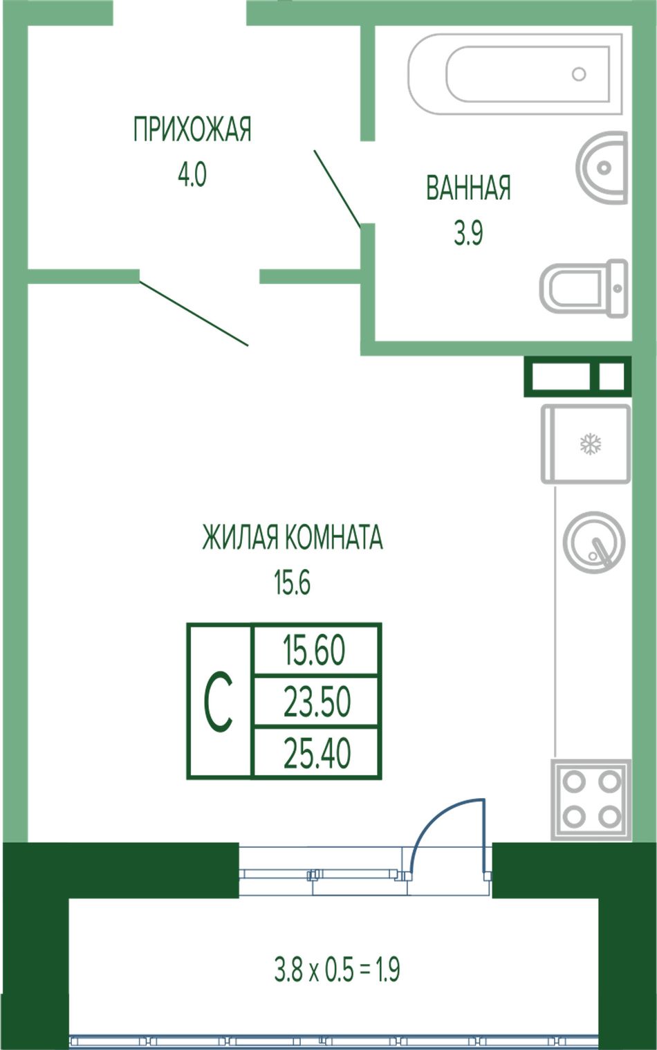 Общая площадь26,3 м²