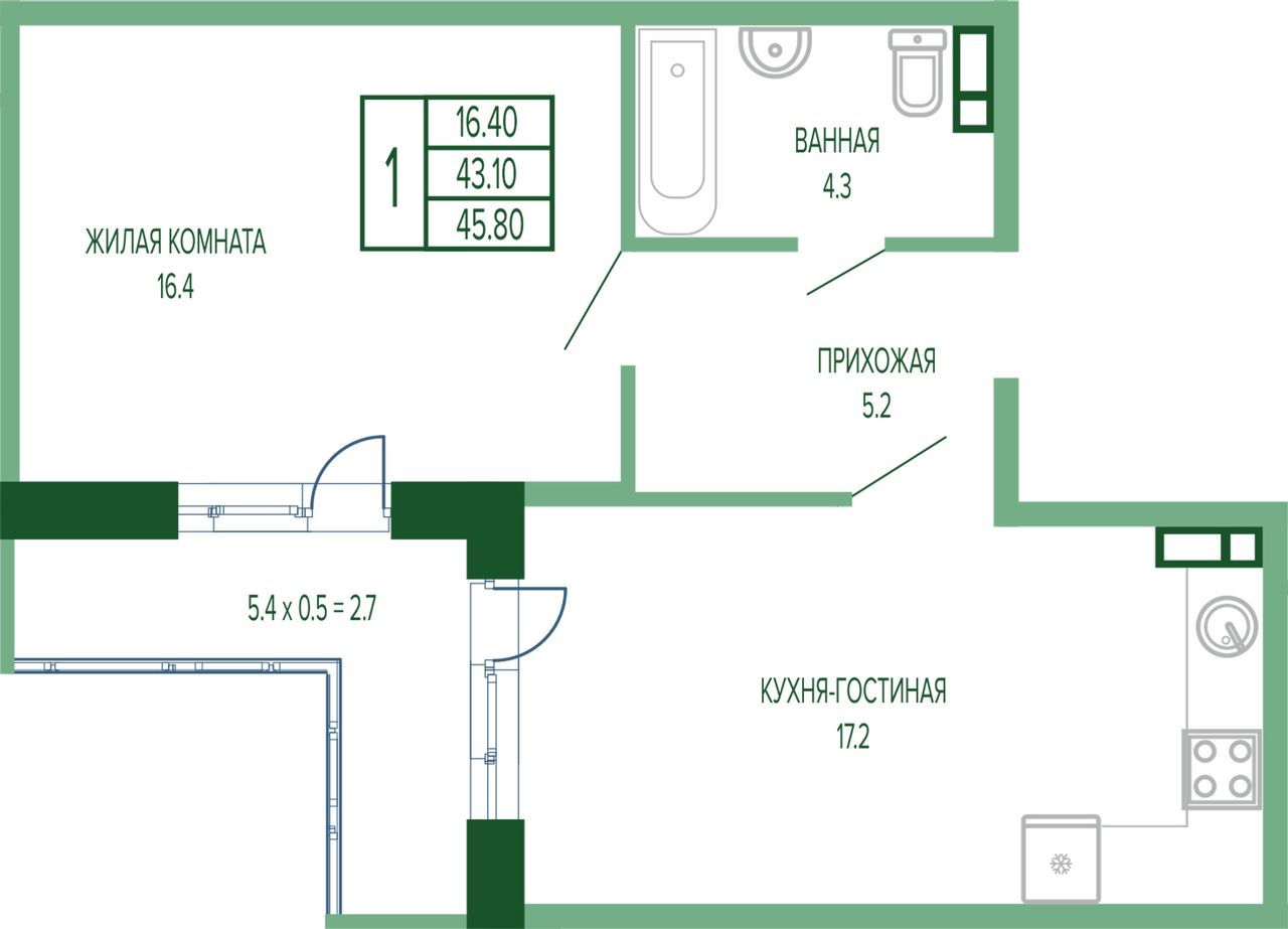 | 1-комн. | 41 м² | 5 млн ₽ |