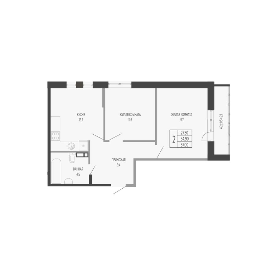 2-комнатная — 57 м² 3/17 эт. в Екатерининский парк