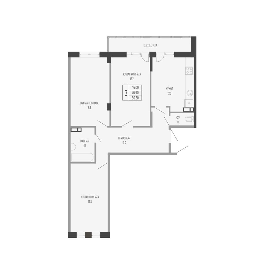 3-комнатная — 80,3 м² 5/17 эт. в Екатерининский парк
