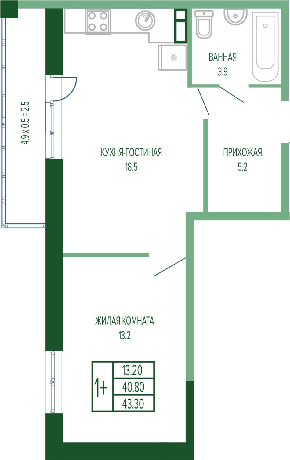 Жилая площадь13,2 м²