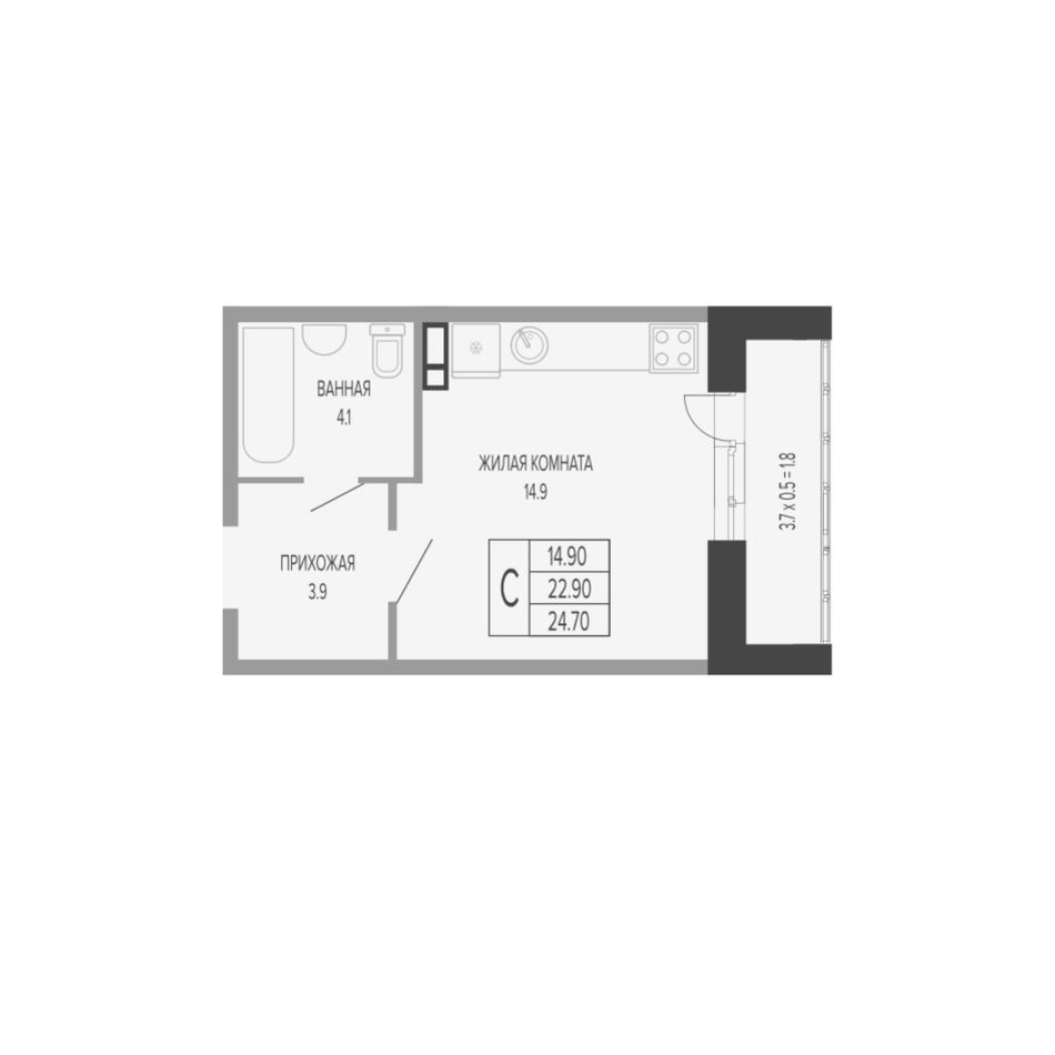 Студия — 25,7 м² 12/17 эт. в Екатерининский парк