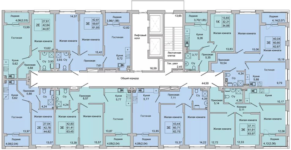 Общая площадь63,45 м²