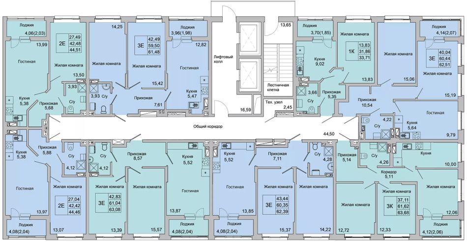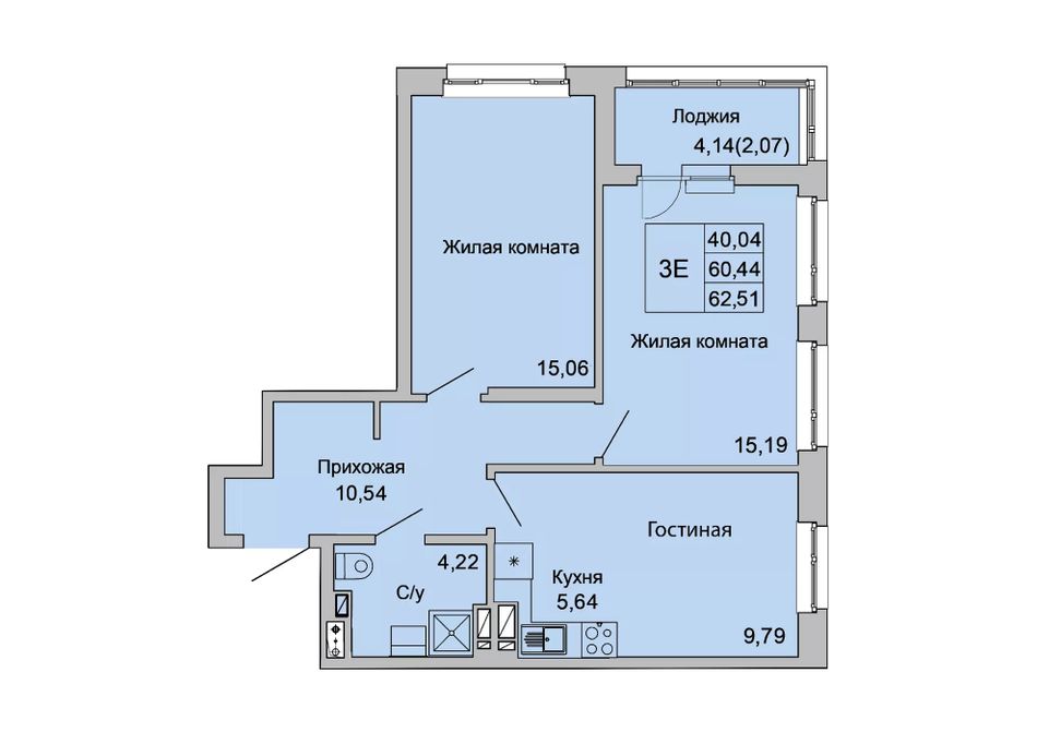 3-комнатная — 62,51 м² 8/16 эт. в Булгаков