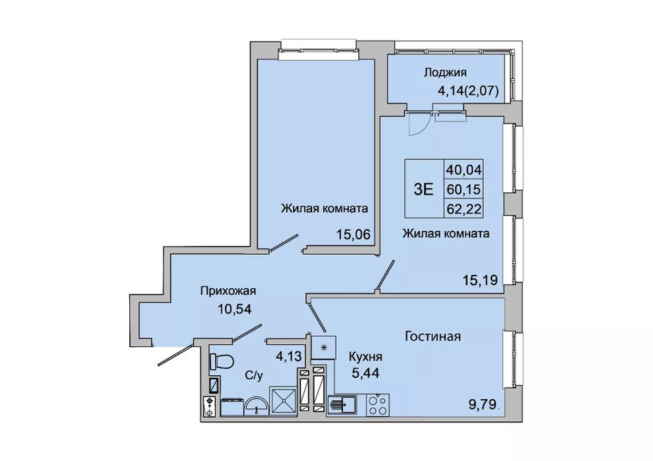 Общая площадь62,22 м²