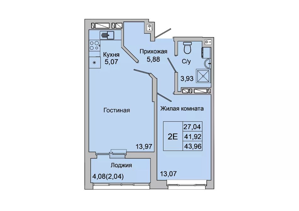 2-комнатная — 43,96 м² 14/16 эт. в Булгаков