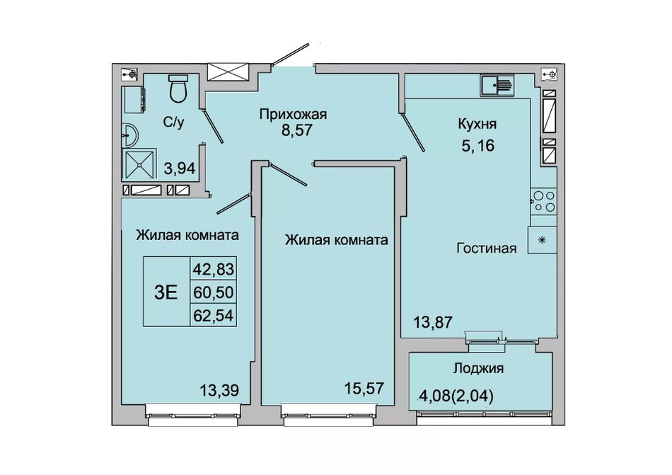Общая площадь62,54 м²