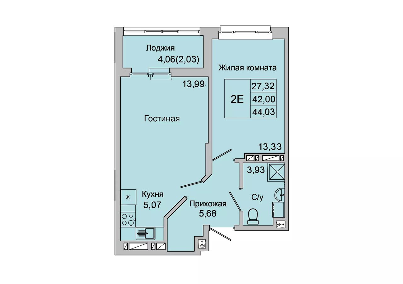 Общая площадь44,03 м²