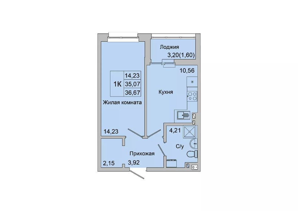 1-комнатная — 36,67 м² 2/16 эт. в Булгаков