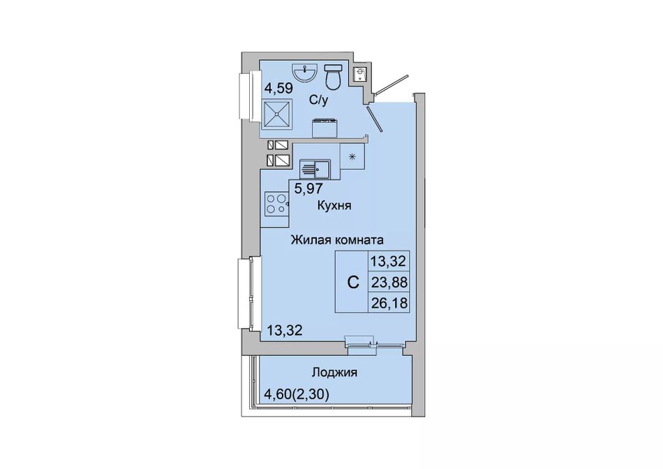 Студия — 26,18 м² 4/16 эт. в Булгаков