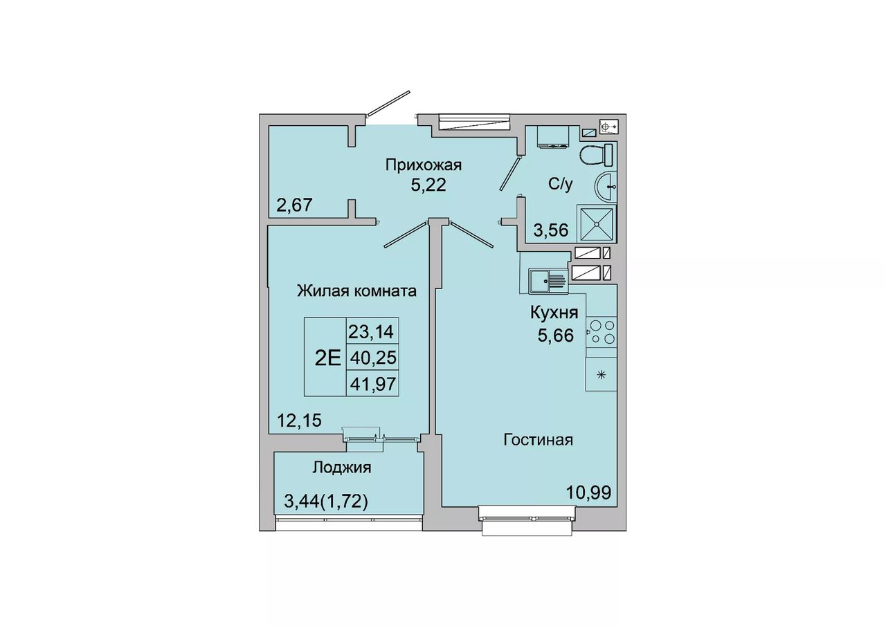 2-комнатная — 41,97 м² 10/16 эт. в Булгаков