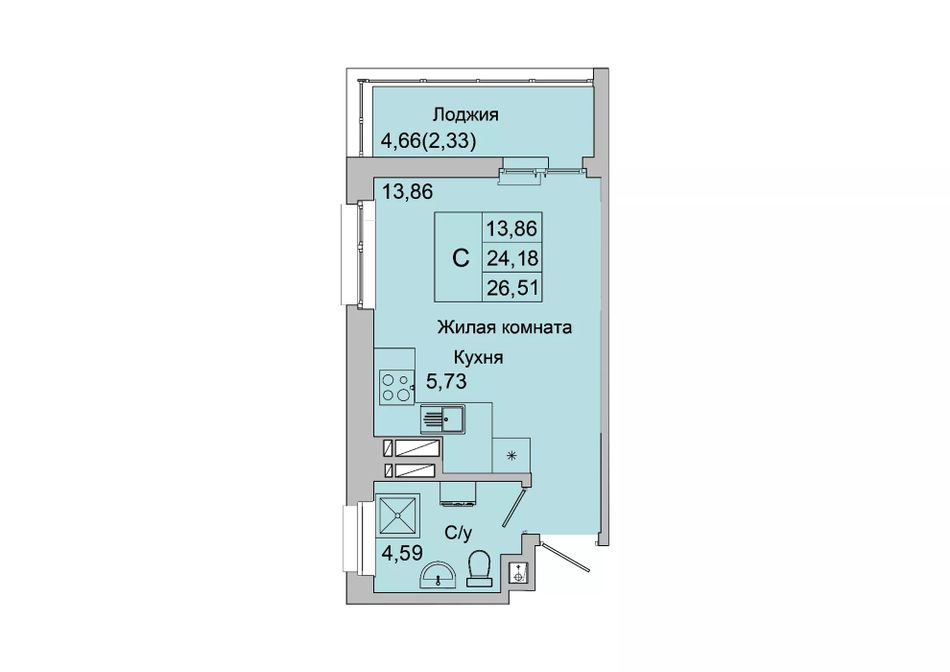 Студия — 26,51 м² 12/16 эт. в Булгаков