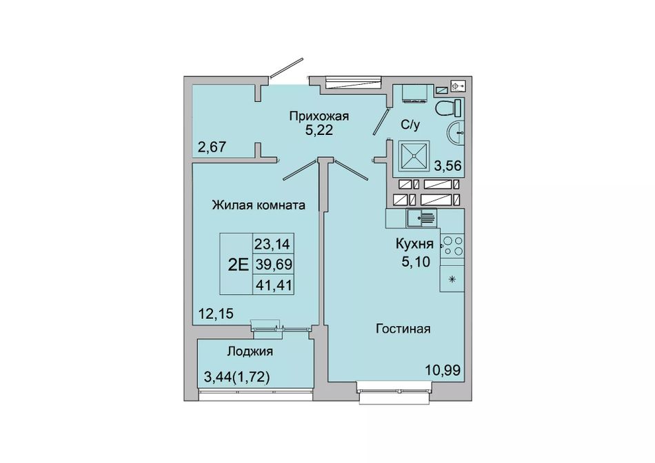 Общая площадь41,41 м²
