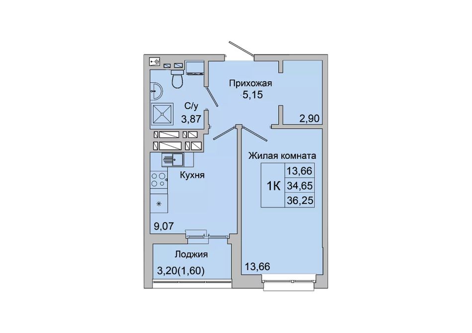 1-комнатная — 36,25 м² 18/16 эт. в Булгаков