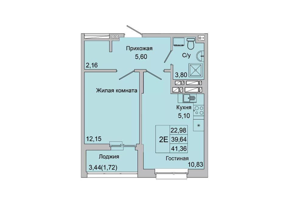Общая площадь41,36 м²