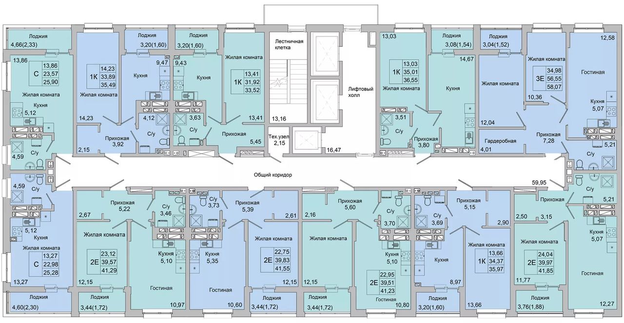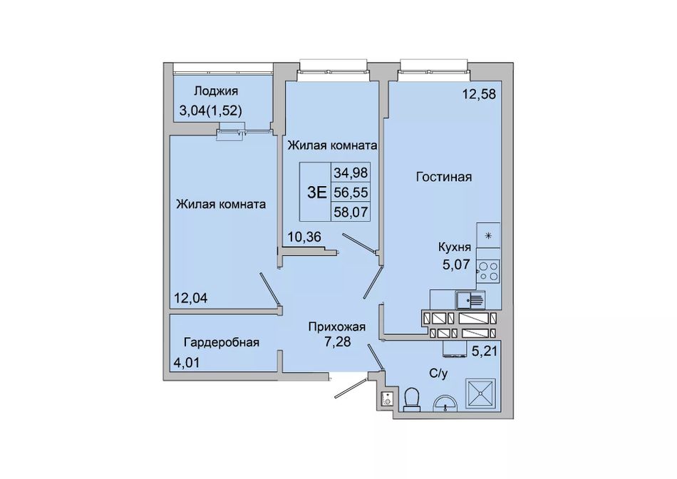 Общая площадь58,07 м²