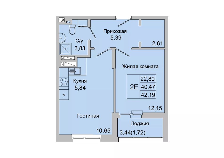 Общая площадь42,19 м²