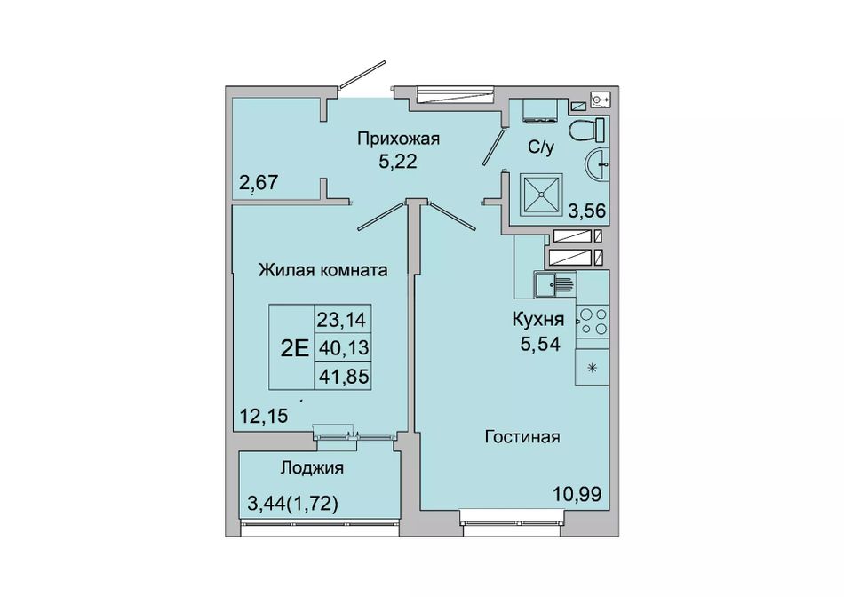 2-комнатная — 41,85 м² 13/16 эт. в Булгаков