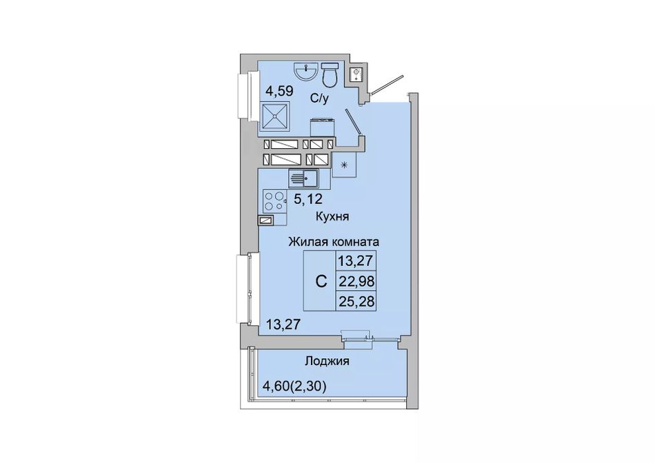 Общая площадь25,28 м²