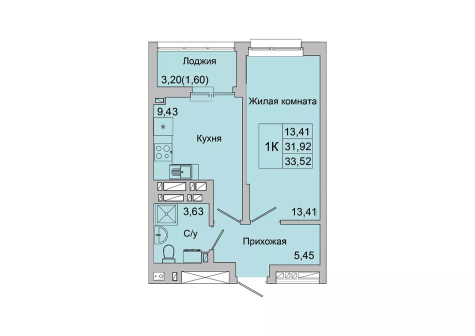 Общая площадь33,52 м²
