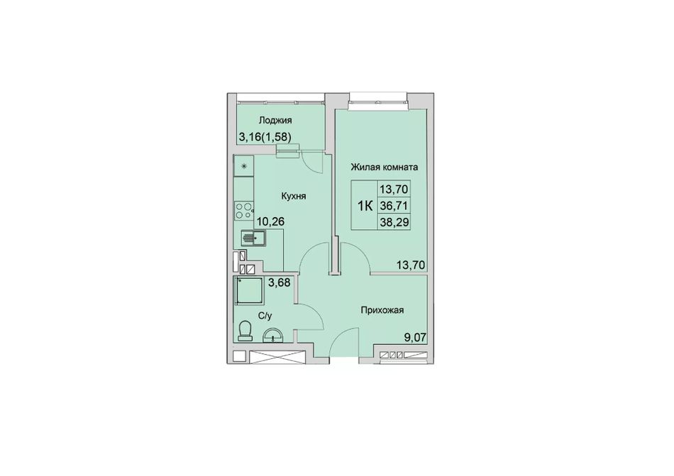 Общая площадь38,29 м²
