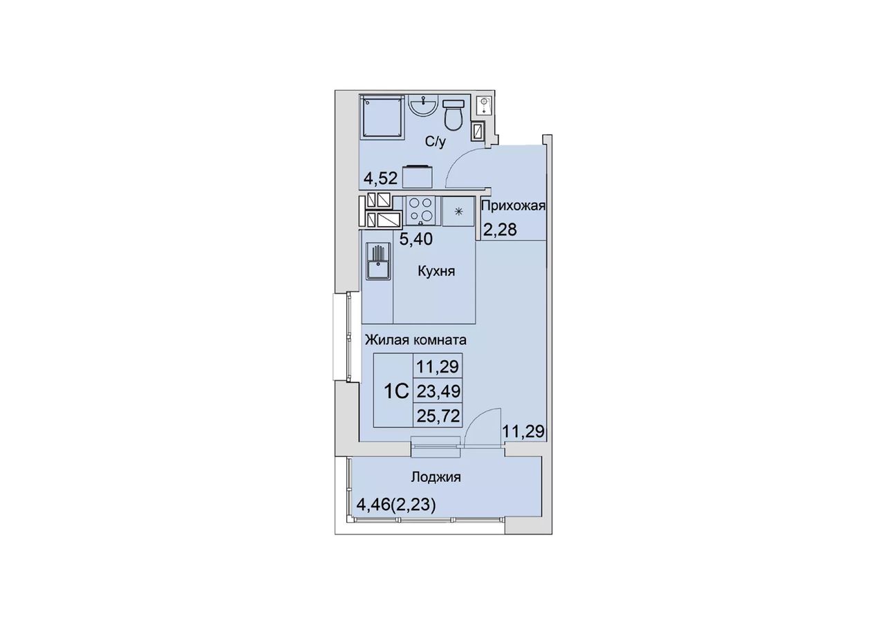 Общая площадь25,72 м²