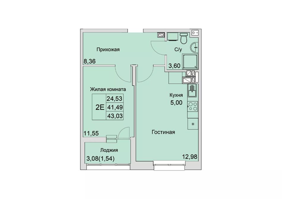 2-комнатная — 43,03 м² 5/22 эт. в Булгаков