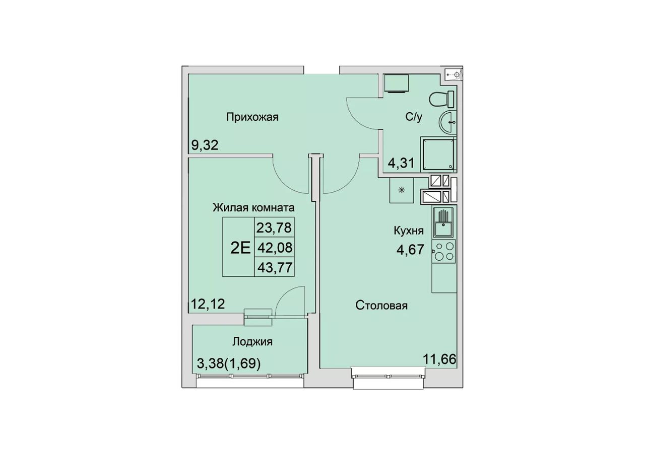 Общая площадь43,77 м²