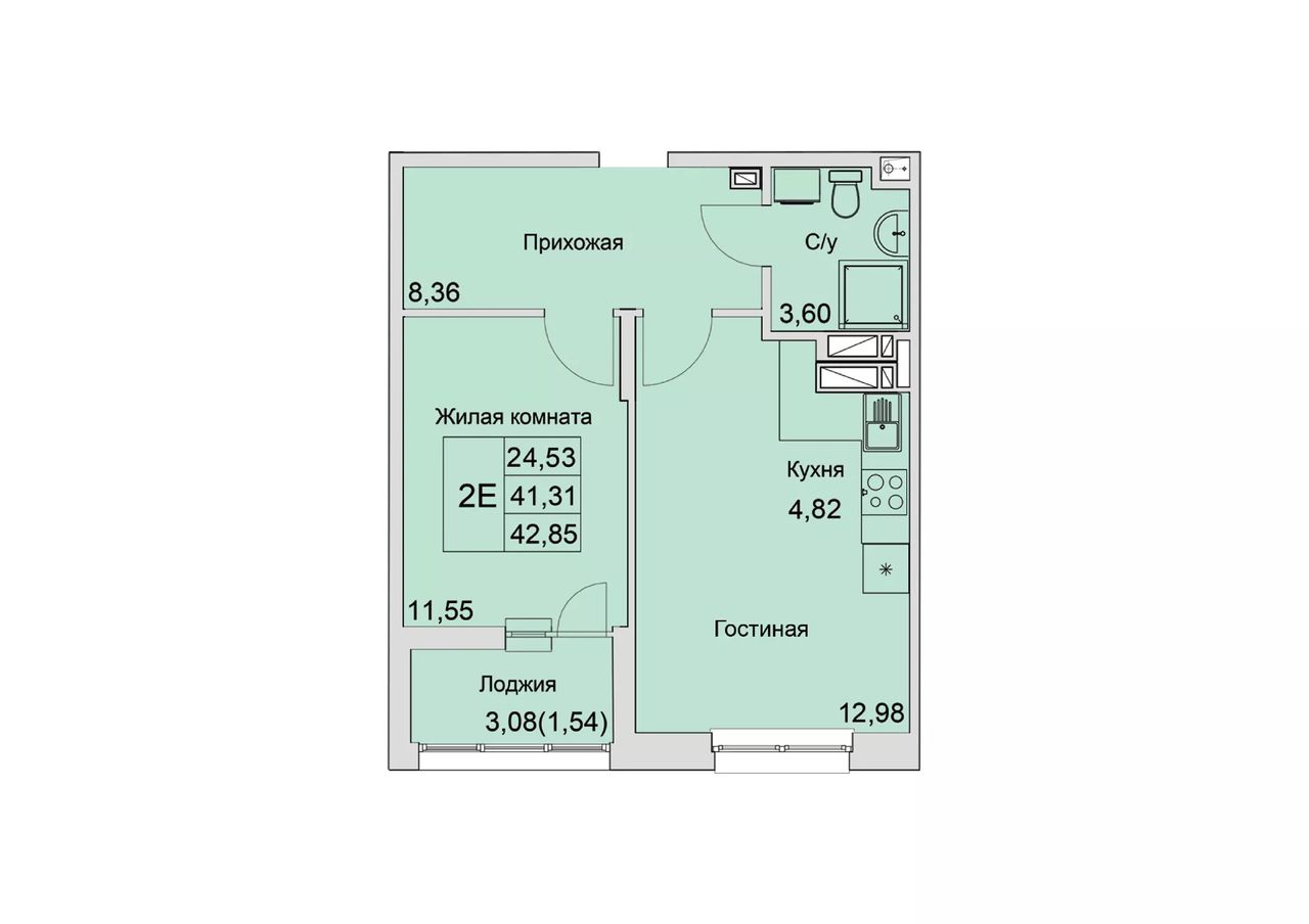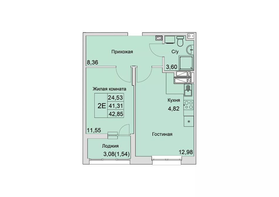 Общая площадь42,85 м²