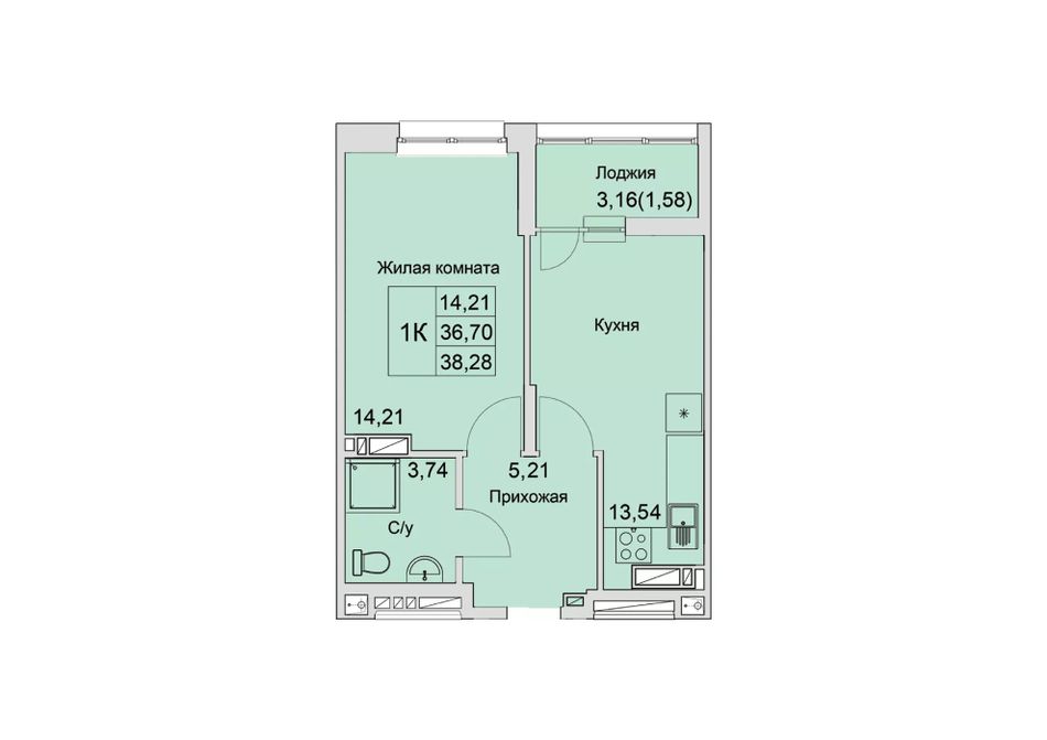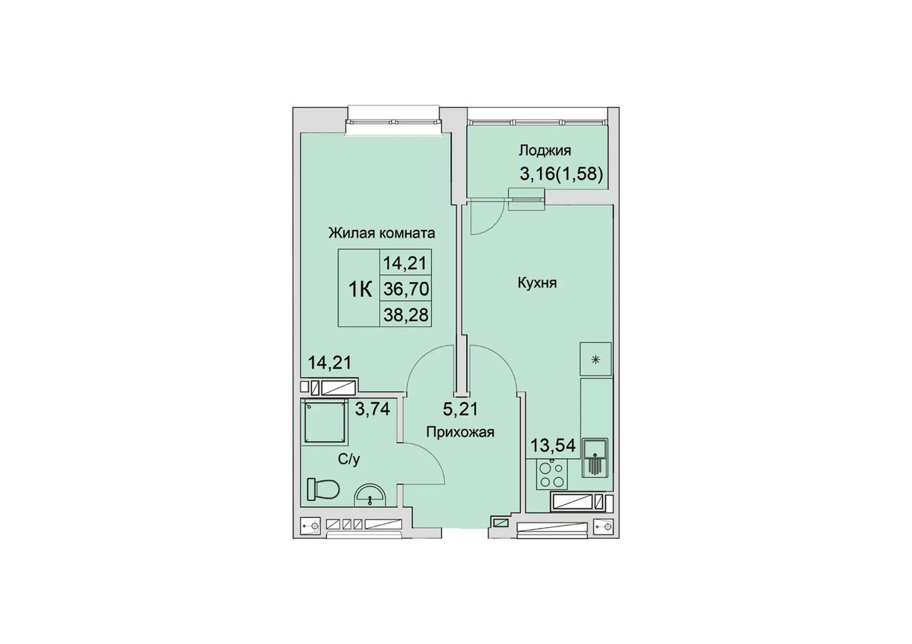 Жилая площадь14,21 м²