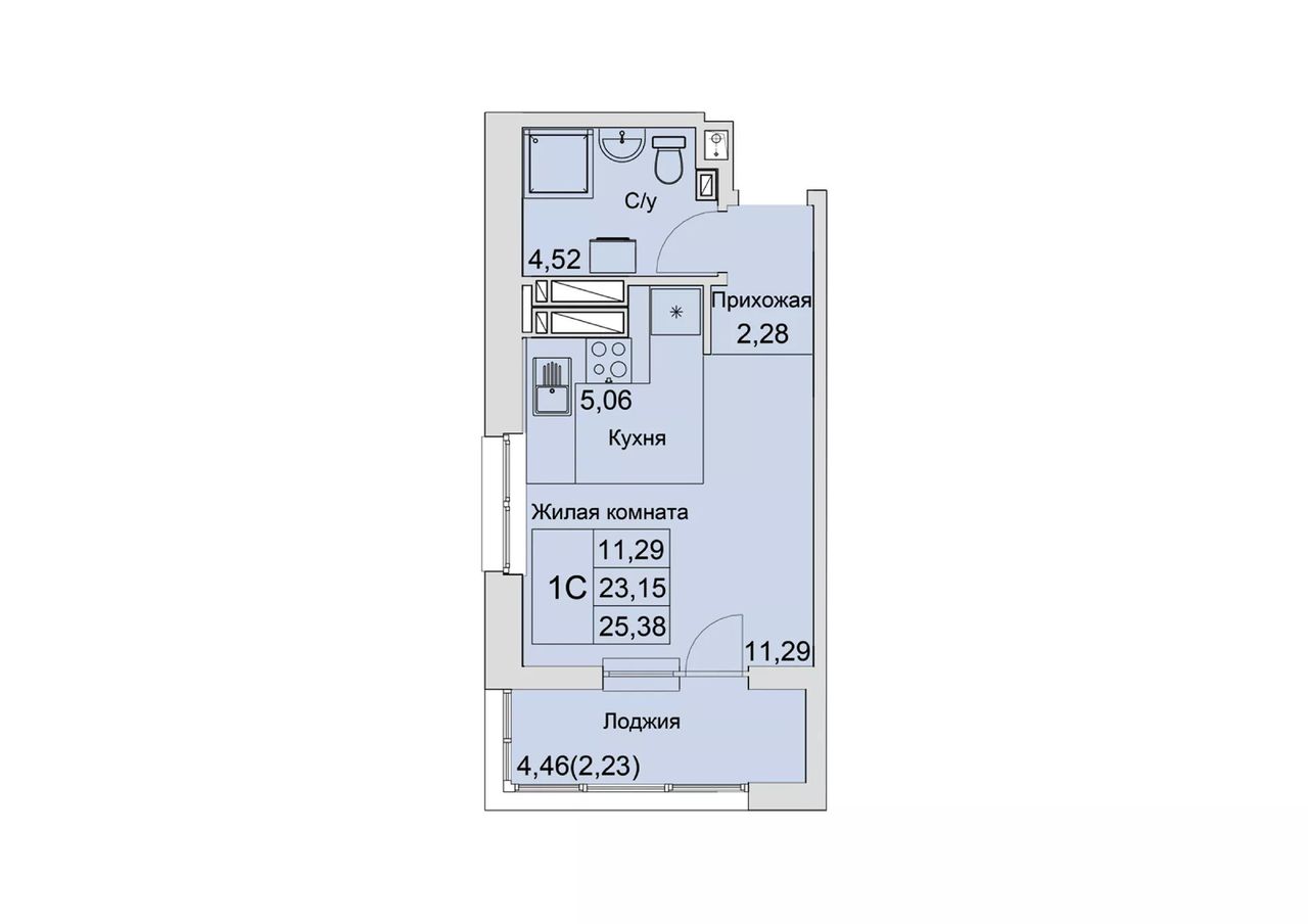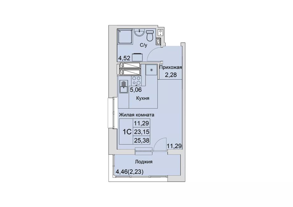Общая площадь25,38 м²