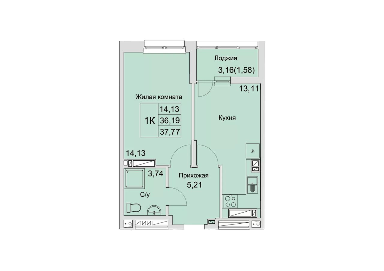 Жилая площадь14,13 м²
