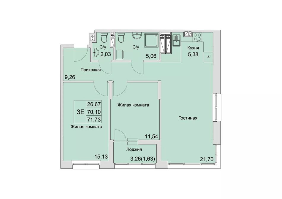 3-комнатная — 71,73 м² 19/22 эт. в Булгаков