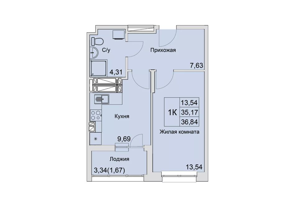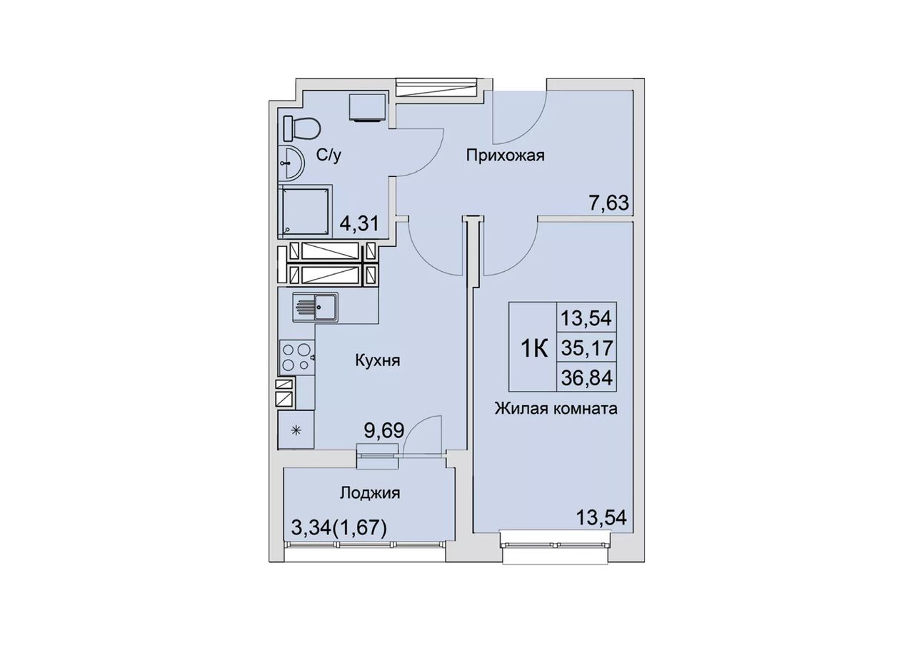 1-комнатная — 36,84 м² 22/22 эт. в Булгаков