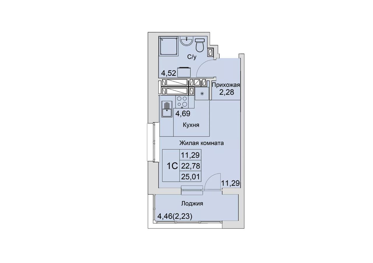 Общая площадь25,01 м²