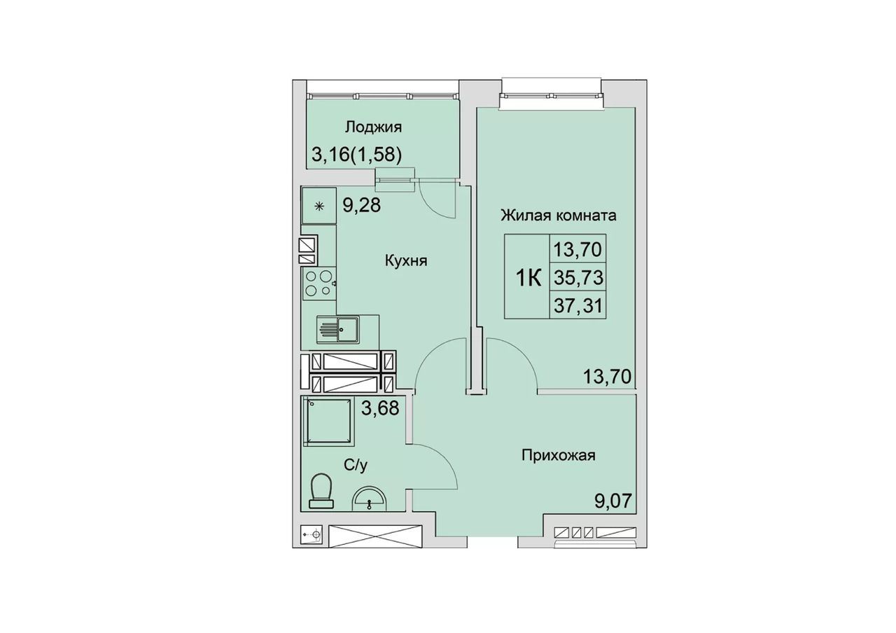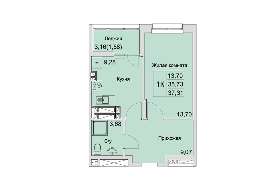Общая площадь37,31 м²