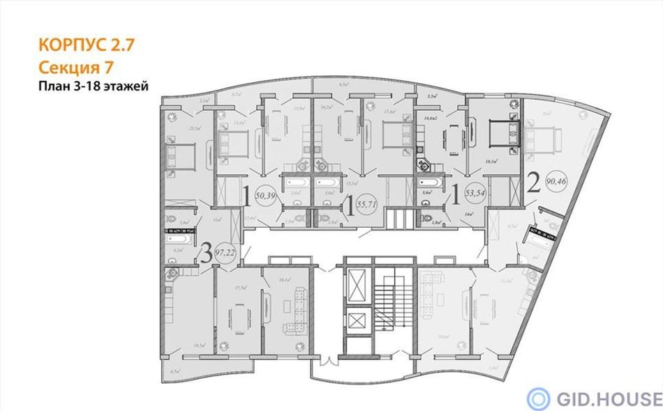 Квартира: 3 к 97,22 кв.м., 8 этаж в комплексе Радонеж, 1 очередь, корп.2.7, сдача: 3кв. , этажей: 20, адрес Краснодар г., Вишняковой ул., д. 1/23, Застройщик: Цифей.