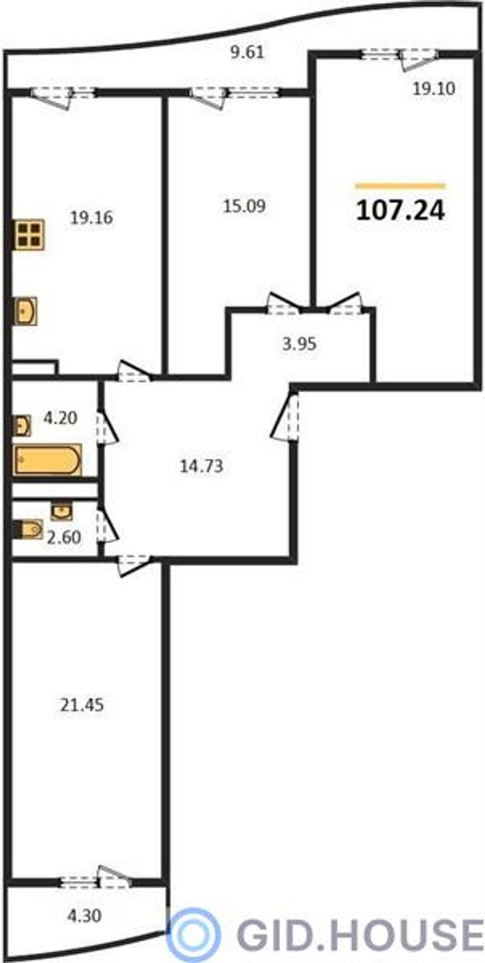 Общая площадь107,24 м²