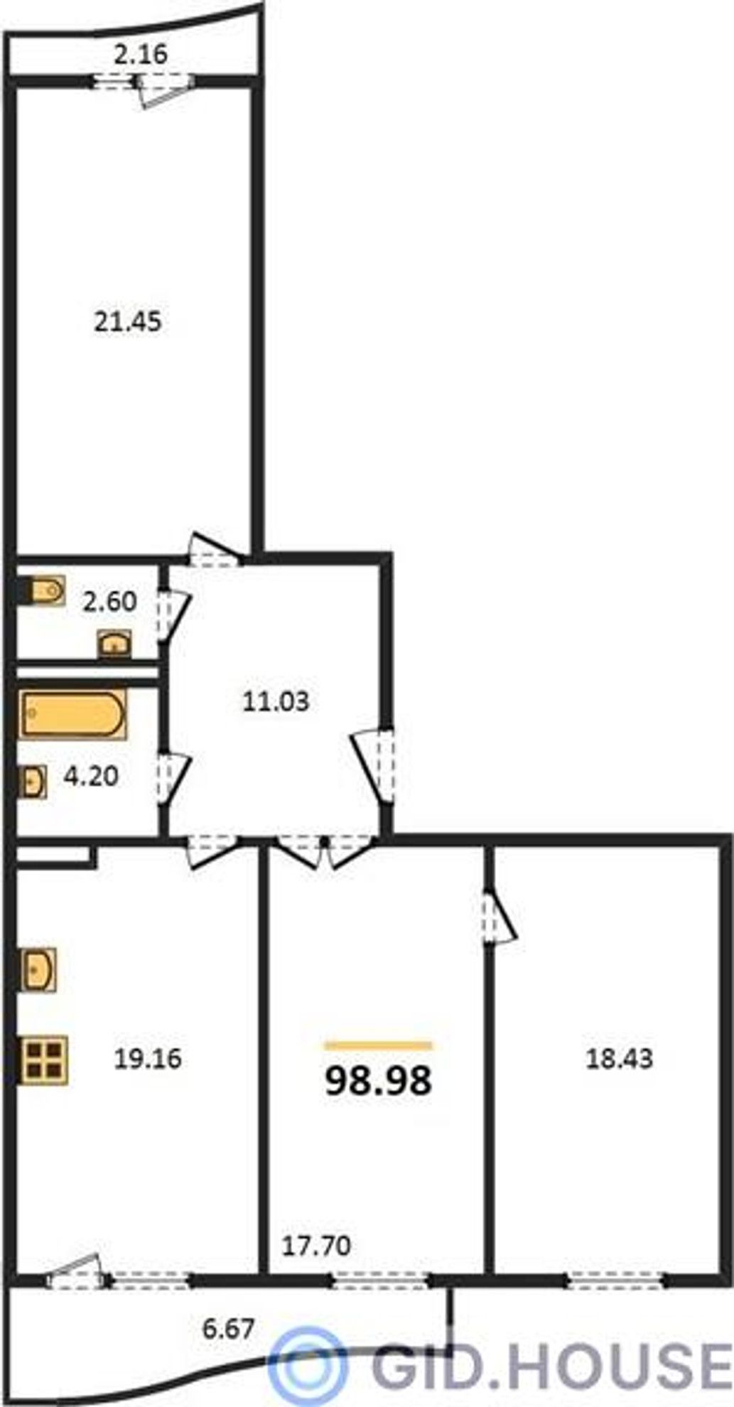 3-комнатная — 98,98 м² 16/20 эт. в Радонеж
