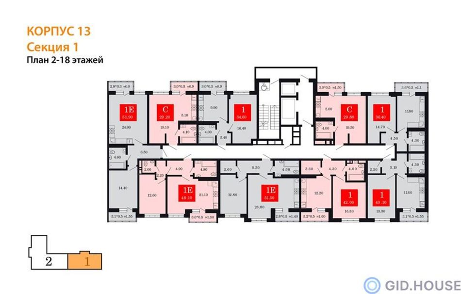 Студия — 30 м² 15/18 эт. в Красная площадь