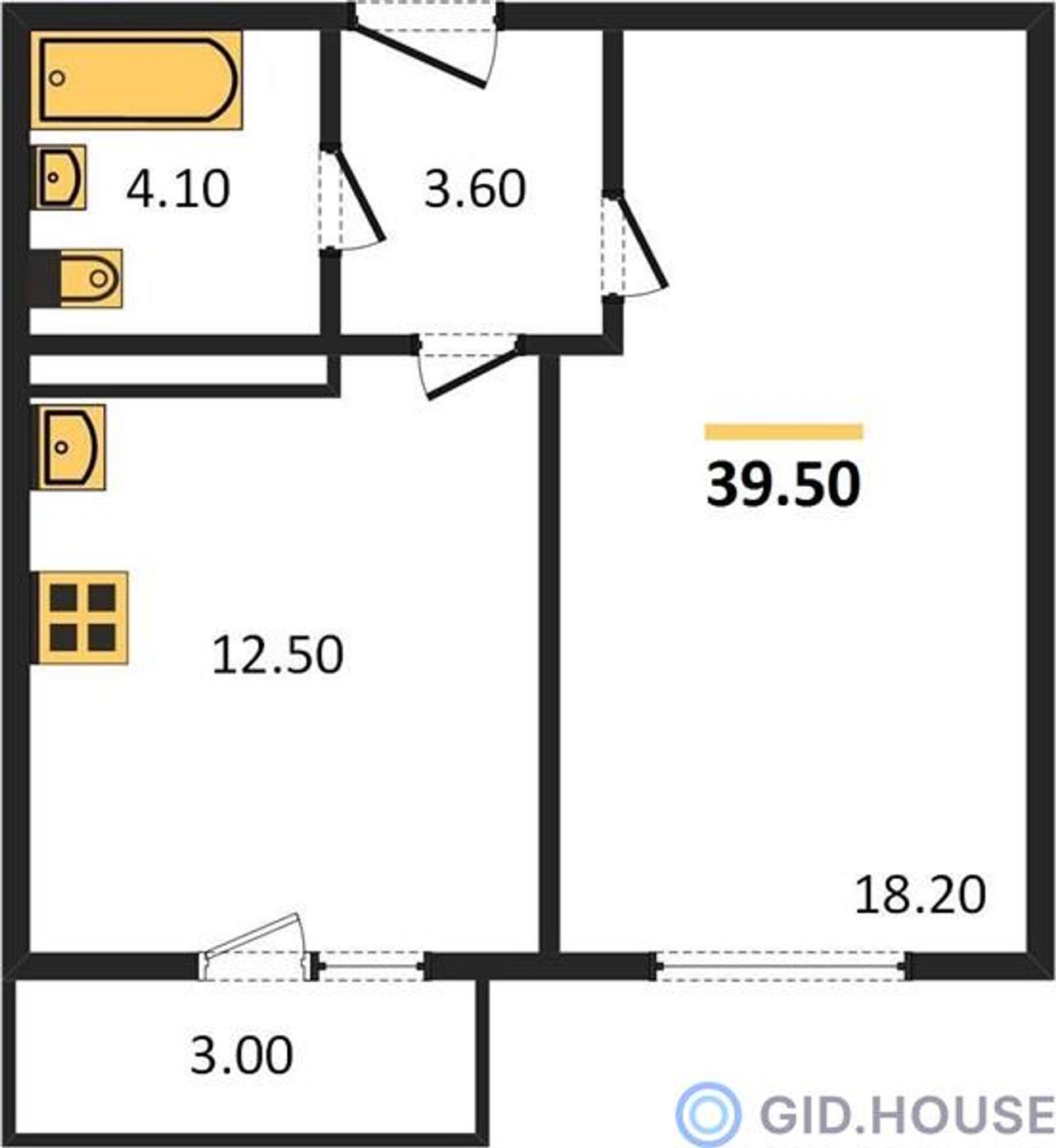 1-комнатная — 39,5 м² 14/18 эт. в Красная площадь
