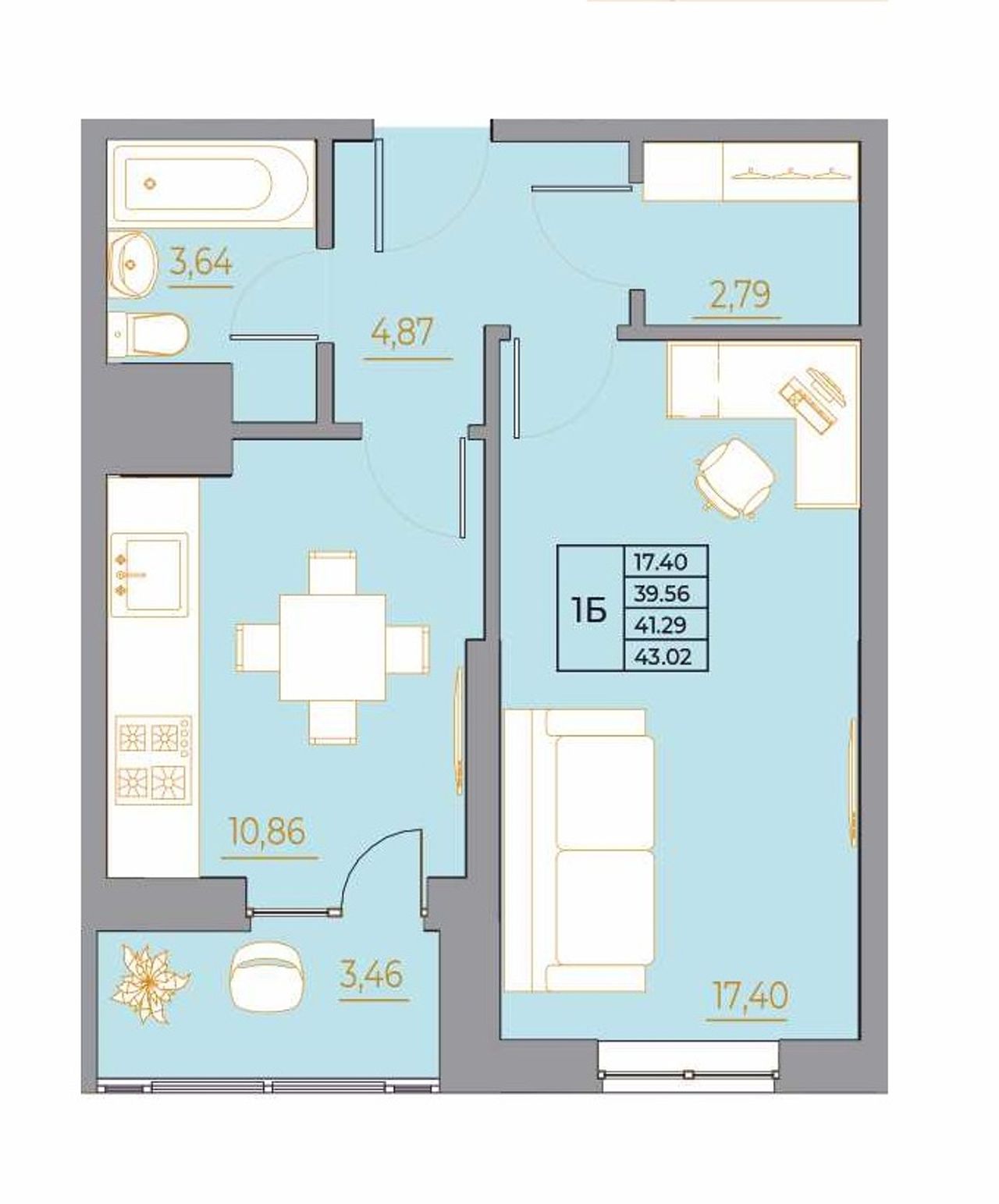 Общая площадь43,02 м²