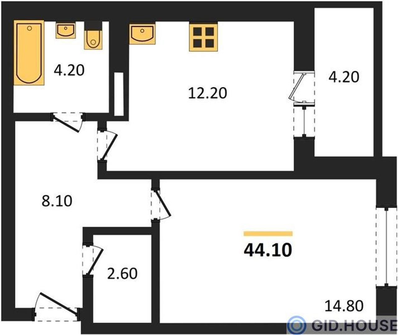 Общая площадь44,1 м²