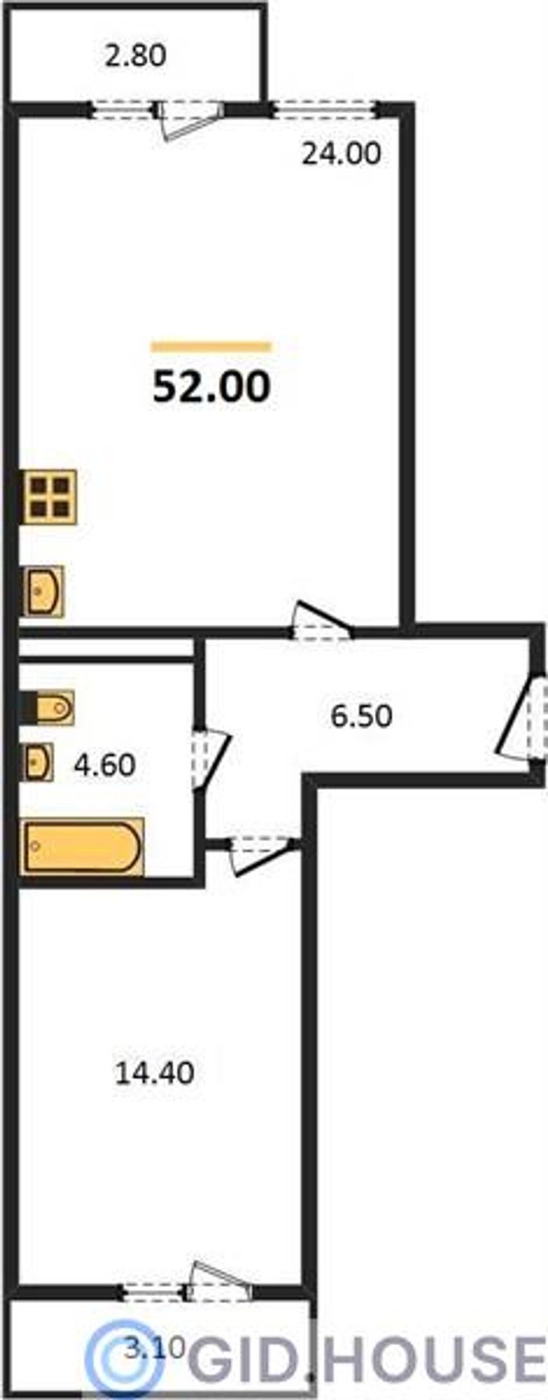Общая площадь52 м²