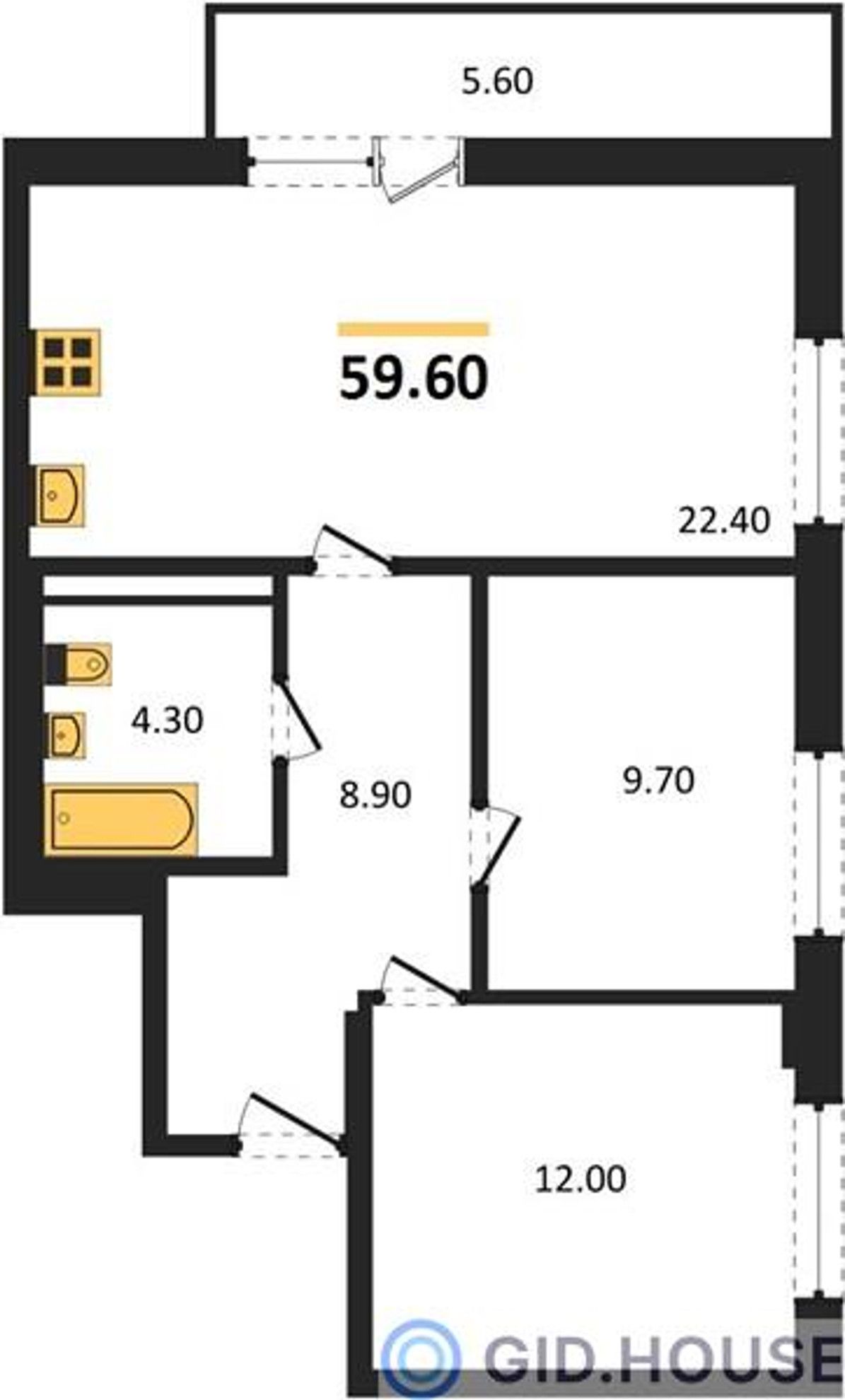 Общая площадь59,6 м²